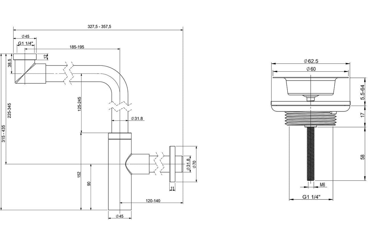 Регулировка сифона по высоте и длине способствует беспроблемной установке при нестандартном расположении коммуникаций и необходимости адаптировать конструкцию под тип и габариты раковины. Конструкция выпуска предназначена как для раковин с переливом, так и без переливного отверстия. Высокая пропускная способность обеспечивает оптимальный отток воды и комфорт водных процедур. Комплект позволит не только сдерживать проникновение неприятных запахов из канализации, но предотвратить утерю мелких предметов, попавших в сливное отверстие раковины. Простота конструкции облегчает уход и очистку от загрязнений.