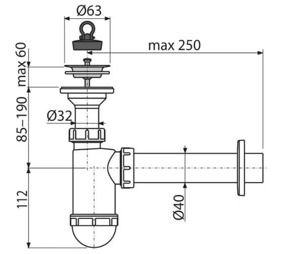 Сифон для умывальника Alcadrain A41 40 мм, с нержавеющей peшeткой 63 мм 00022330 00022330