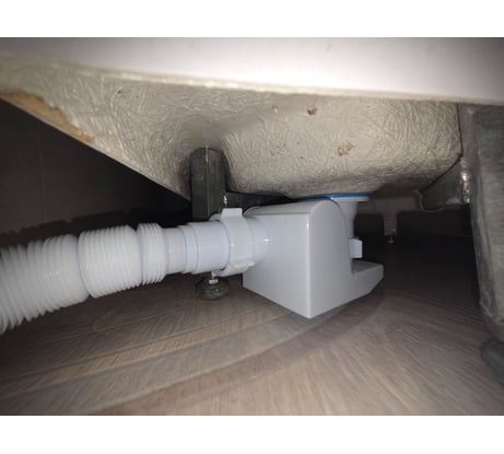 Отличный вариант для низкого душевого поддона. Но надо иметь в виду, что диаметр патрубка гофры - 50! Если раньше стояла гофра "на 40" с заменой манжеты на приемной трубе, надо приготовить штатную.
