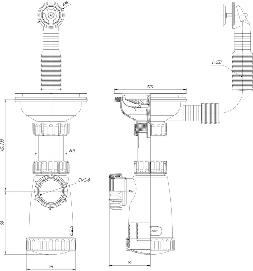 - Стандартные размеры делают сифон совместимым с большинством кухонных моек.