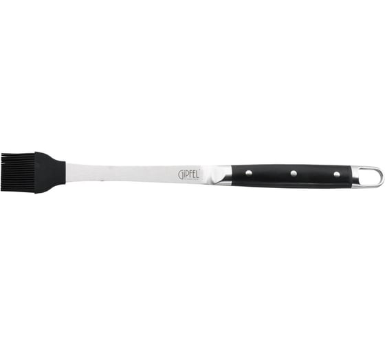 Силиконовая кисть GIPFEL MODENA 51264. Длина 42,5 см. Инструмент сделан из нержавеющей стали 2Cr14. Толщина 1,8 мм. Ручка выполнена из древеснослоистого пластика, рабочая часть – из силикона. На ручке имеется петля для подвешивания.