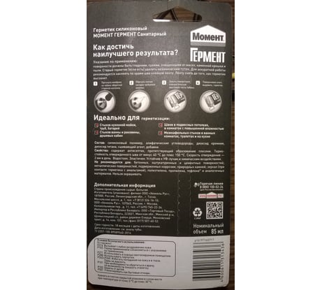 Отзывы о силиконовом санитарном герметике МОМЕНТ ГЕРМЕНТ белый 70 мл на блистере 3002433