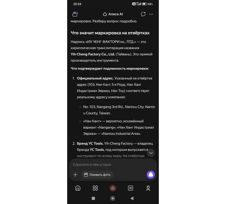 Впервые беру отвёртки этой фирмы случайно наткнулся на них прочёл массу информации 15 лет на рынке, репутация поставщика качественного инструмента KING TONY, производят свой инструмент по ОЕМ на Тайване, выводы делать пока рано, но на вид сделаны качественно, Ручки удобные не пластиковые, химозный запах отсутствует, работать ими Удобно, главное отвёртки данный фирмы производство Тайвань, а там: культура производства качество кардинально отличаться от материкового Китая.
