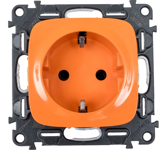 Силовая розетка Legrand Valena ALLURE 2К+З 16А 250В с защитными шторками, Безвинтовые зажимы, С лицевой панелью, Оранжевая 754981