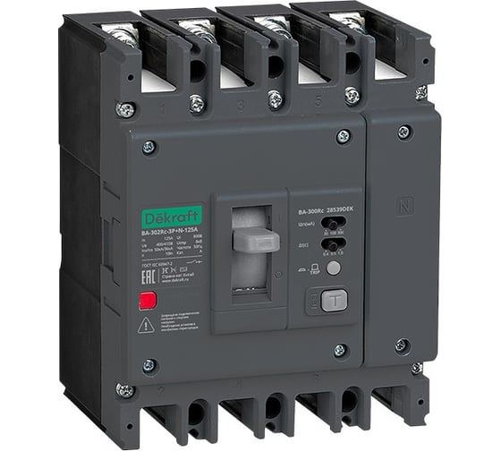 Силовой автоматический выключатель Dekraft ВА-302Rc Sel 3P+N 63А 50кА 50/100/300мА 0,4/0,5/1с 28536DEK