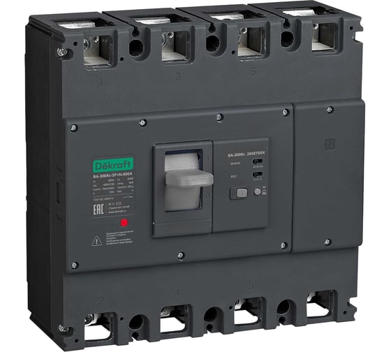 Силовой автоматический выключатель Dekraft ВА-306Rc Inst, 3 P, 800 А, 70 кА, 300/500/1000 мА 28575DEK