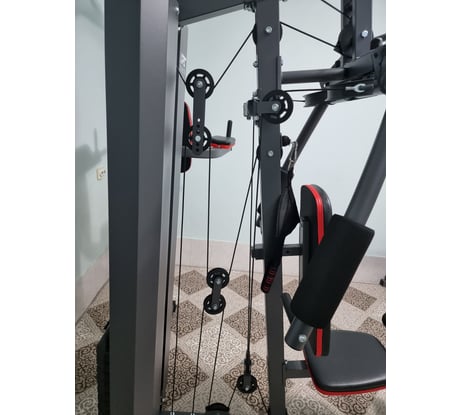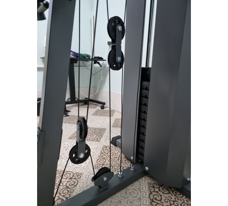Тренажер хороший за свои деньги. Но пользователям выше 185 см я бы его не рекомендовал. А если Вы берете для своего ребенка - то вообще идеальный Сам тренажер поставляется в 4-х коробках. Сразу скажу, что самая большая коробка неподъемная для одного человека. Только вдвоем ее можно перетащить. Мне помог курьер из ВИ. Ее вес, наверное килограммов 70. Все крепления на месте, ключи и шестигранники тоже в комплекте. Никакой дополнительный инструмент для сборки не пригодится. Инструкция отвратительная! Мало того, что мелкая, так там еще и на картинках ошибки есть. Я собирал в одиночку 5 часов. 1 час потратил на то, чтобы понять, как фиксировать самый основной трос. На картинке он продевается через третий блок в виде стандартного колесика, но по факту там колесико закрыто крышками с направляющими. И они с завода были у меня поставлены неправильно. Пока додумал, что их нужно поменять, прошел час. Трос должен быть проложен в направляющие. Я приложил фотку крупным планом, чтобы Вы, если купите, смогли правильно его настроить. У меня рост 185 см. и я постоянно ощущаю, что практически нахожусь на грани. Делаешь тягу и кажется, что не хватает пару сантиметров для полной амплитуды. Если у Вас рост меньше - то тренажер для Вас будет в самую пору. Еще из минусов - блок с грузами не имеет ограничений сверху и постоянно задевает колесо троса. Что стоило производителю сделать ограничители по подъему - ума не приложу? Нужно что-то колхозить. Иначе колесу через какое-то время настанет совсем больно. Каждый раз следить за амплитудой, чтобы не задеть верхнее кольцо - такое себе занятие. Особенно, когда сидишь спиной к грузам Турник очень низкий. Нужно подгибать ноги (для меня немного непривычно). Но, думаю, привыкну. А куда деваться-то ))) Брусья тоже не фонтан. Во-первых они расходятся (потому что не параллельные, а виде подковы). Но самое ужасное, что подушки под локти находятся очень близко к спинке. Если попробовать положить на них локти, то спинка буквально выталкивает тебя. Единственный способ сделать поднятие ног - это вис на турнике. Вообще, знал бы я о таком недостатке - купил бы лучше D7003 (точно такой же, но без турника и брусьев) - мог бы на сэкономленные деньги купить отдельно турник и отдельно брусья) А так в целом за свои деньги очень даже хороший комплекс. Брал со скидкой. Кстати, под него нужно места не менее 2,5 х2,5 метра. Конечно, весь комплекс упражнений на нем сделать не получится - у меня еще три штанги есть и гантели, но хорошую нагрузку на основные мышцы вполне себе на нем получить можно. Кстати, из плюсов - он не сильно шумящий оказался. Да, есть небольшое лязганье, но очень даже приятное. Ничего не смазывал - как собрал из коробки, так и тренируюсь