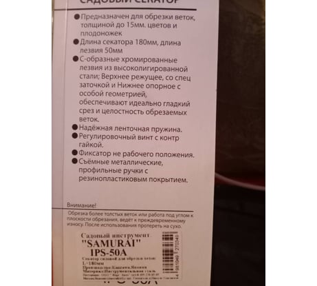 Отзывы о силовом секаторе для обрезки веток L=180 мм SAMURAI IPS-50A