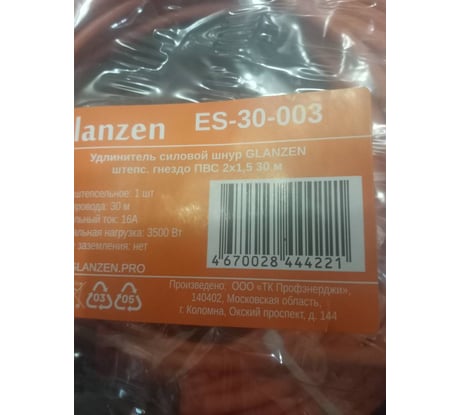 Вопросы и ответы об удлинителе-шнуре GLANZEN ES-50-003 штепс. гнездо ПВС 2x1,5 50 м 00-00006705