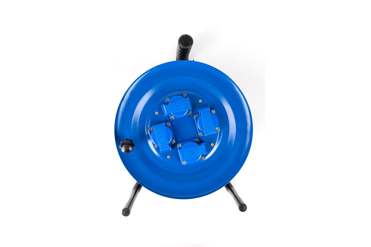Силовой удлинитель на металлической катушке с заземлением 20 метров\КГ 3x1,5\220В -представляет собой металлическую катушку диаметром 300мм с намотанным проводом, оснащенным четырьмя розетками.
