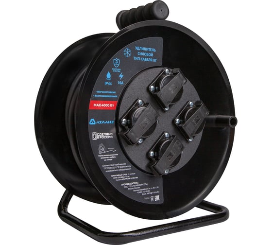 Отзывы об удлинителе АТЛАНТ на металлической катушке КГ 4000 Вт 40м IP 44 с заземлением 50035