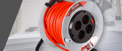 Удлинитель на силовой катушке оснащен 4 розетками и способен обеспечивать электроэнергией сразу 4 потребителя. Общая мощность потребления не должна превышать 3500 Вт, при этом кабель должен быть полностью размотан. В случае если кабель частично остается на бобине, мощность потребления должна быть не более 1300 Вт во избежание перегрева. Силовой удлинитель оснащен кабелем сечением 3х1,5, длина которого равна 30 м. Такой длины достаточно для использования на небольшой строительной площадке, дачном участке, в ремонтной мастерской, где требуется удаленное подключение к сети электрической дрели, рубанка, пилы, садового триммера, прочих устройств. Пластиковая катушка оснащена выключателем и тепловым реле, которое отключает питание при перегрузке. Бобина установлена на металлический каркас, имеет ручку эргономичной формы, штепсель можно зафиксировать на краю с помощью специальной клипсы.
