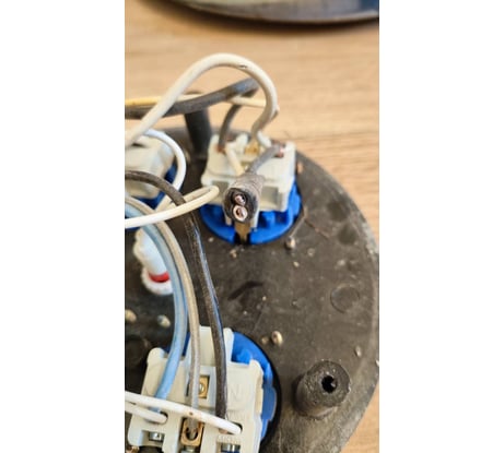 Это не удлинитель на стальной катушке, а просто удлинитель. Поясняю. Удалось со значительными усилиями размотать и смотать его, по-моему, только 2 или 3 раза, затем катушка перестала крутиться. Потом использовали как обычный удлинитель с ручным сматыванием и разматыванием. Через 3 месяца активного использования отлетел провод от клеммы в конструкции разветвителя на 4 розетки. Сборка и разборка удлинителя - это квест на сообразительность, как попасть чёрными саморезами (!) в чёрные пазы для саморезов в условиях ограниченной видимости внутри изделия. Без фонарика - никак. Пришлось намотать дополнительно изолентой, чтобы не было нагрузки на клеммы крепления при использовании провода (белая изолента на фото).