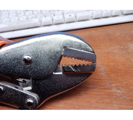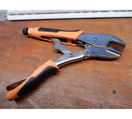 Не пользовался раньше таким инструментом, не знаком с ним. Когда получил, понял, что параллельно губки не сжимают материал, они смыкаются на материле под углом.