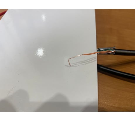 В целом, общее впечатление - хорошее. Качественная на ощупь изоляция, легко снимается. Составь - медь. Видно по фото. Пробовал и нагревать и "шкоблить". При снятии части материала с жилы цвет не менялся, а после нагрева зажигалкой - просто протёр жилу и как ни в чём не бывало. После чёрной изоляции идёт экран и прозрачная плёнка. Что касается сечения кабеля - при лёгком сдавливании показал штангенциркуль 0.44. К сожалению, сравнивать не с чем, делаю сеть у себя дома в первый раз. Не снижал звёзд, понимая, что медь - мягкий материал плюс всё таки мой прибор - не на столько точен, чтобы определить разницу между 0.44 и 0.51.