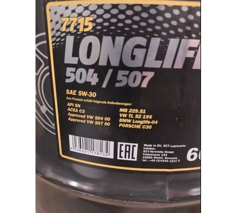 Сопутствующие товары для масла MANNOL LONGLIFE 504/507 5W-30