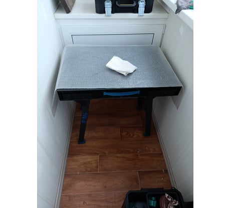 Своё назначение выполняет 👌 Удобный стол для домашнего хобби. Крепкий, устойчивый, легко складывается, ручка для переноски, струбцины держатся хорошо. Докупил к нему ещё фиксаторы.