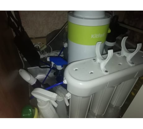 Добрый день. Хотел бы рассказать о моем опыте покупке этого товара. После продолжительных поисков выбрал данный фильтр не буду останавливаться на том как выбирал сравнивал и т.д. Заказа пришел быстро получил в пункте выдачи все быстро, аккуратно чинно благородно. Сразу ставить не стал, простоял дома где то пару недель. В коробке предсобранный сам корпус с установленными фильтрами. Бак – к слову металлический! но я сомневаюсь что в нем 7,6 литра он меньше 5 литровой бутылки но не суть. Сейчас не это главное. Первое что сразу смутило, когда достал из коробки фильтр, практически на всем фильтре отсутствовали зажимы(фиксаторы) для фитингов такие синенькие скобки на фото…ладно ок заказал на маркетплейсе 20шт… и представьте что все 20 я установил на фильтр… Второе и самое большое разочарование что после всех сборок, ожиданий и установки данный агрегат не заработал… Подключил к воде и все…вся вода идет в дренаж постоянно… не останавливается… полтора часа лилась думал это умная штука себя промывает, но нет. Полез в интернет. По совету в интернете подключил первые три ступени очистки напрямую от крана до крана – работают. Угольный фильтр напрямую от источника работает. И вуаля осмотическая колба подключенная напрямую вообще воду не пропускает тупо все уходит через дренажное отверстие. Колба чистая и новая на фото приложена. И как это понимать? Все новое, из коробки. По факту сейчас подключил 3 ступени напрямую к питьевому крану. И теперь такой вопрос уважаемые Все инструментовцы как быть? Что делать? Поэтому ставлю 2 звезды за заказ. Завтра попробую дозвониться до техподдержки и во все инструменты и гейзер. По мере решения буду добавлять комментарий. Кому интересно пишите.