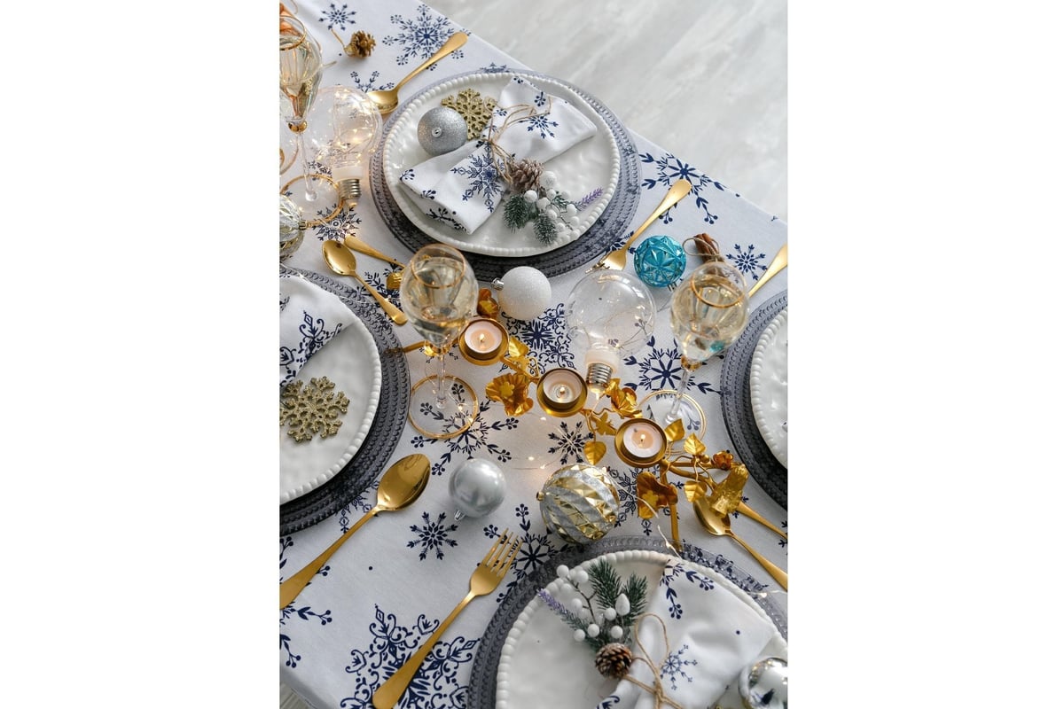 Скатерть Доляна Синие снежинки 220x146 +/- 3 см, 100% хлопок, 164 г/кв.м 4478736
