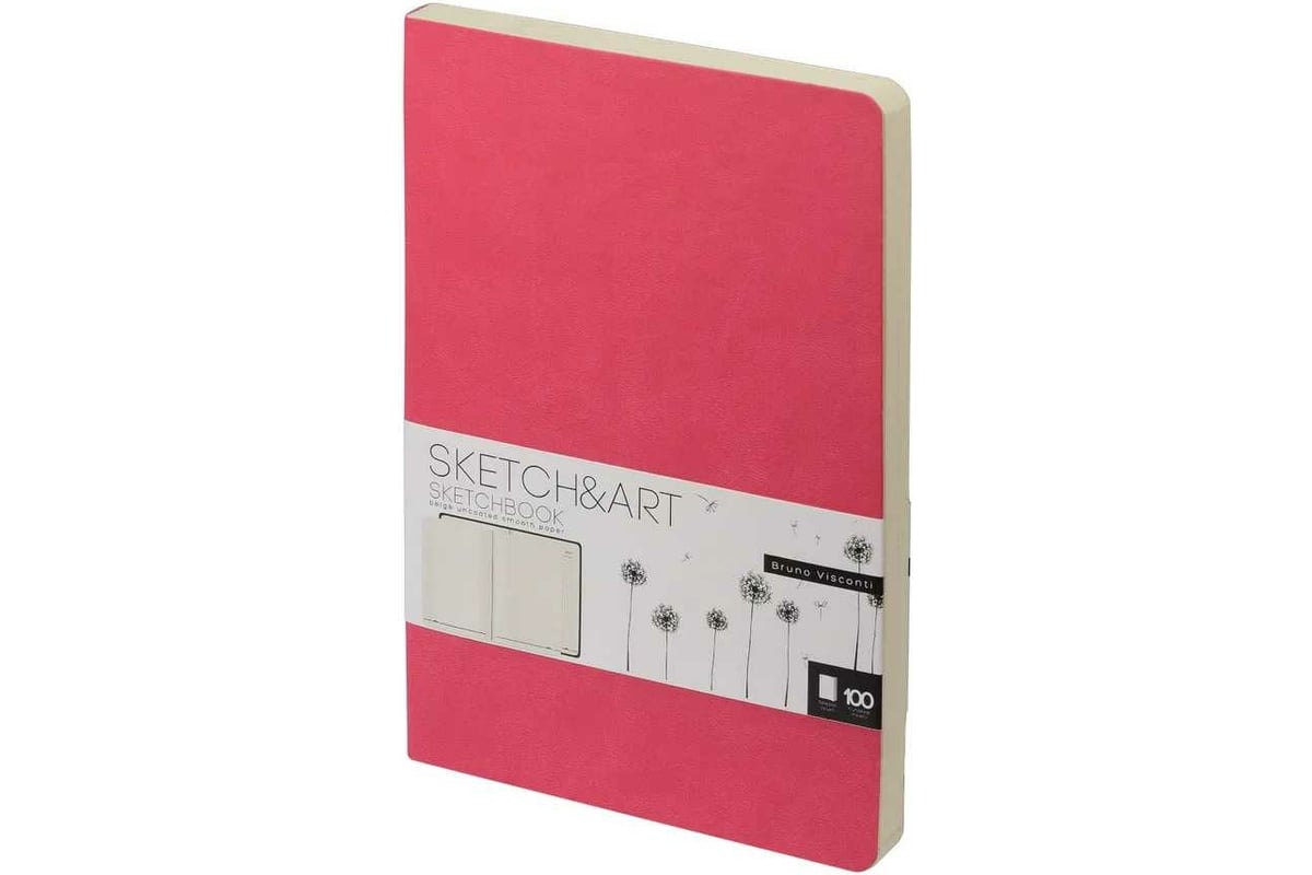 Sketchbook Bruno Visconti BV 140х210 мм, 100 листов, бежевый 100 гр, в мягком переплете, фуксия 1-500/12