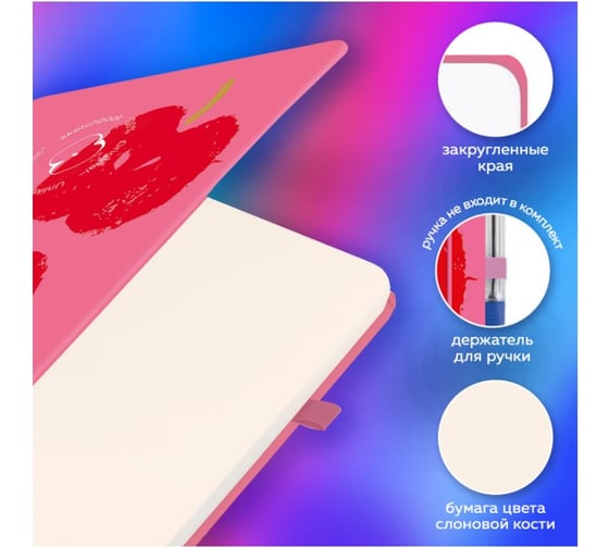 Скетчбук BRAUBERG слоновая кость, 140г/м, 130х210мм, 80л, софт-тач, резинка, ART, Red apples, 117773