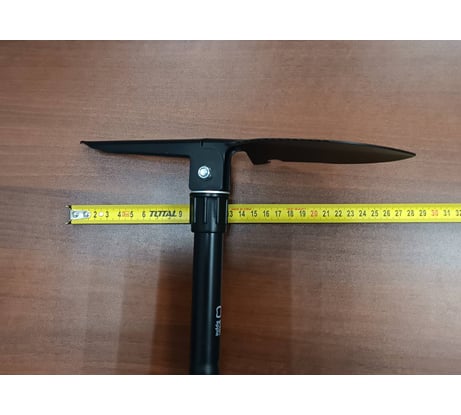 В сложенном виде очень компактная, с чехлом из оксфорда. Металл штыка, кирки, рукоятки весьма достойный. Резьбовое соединение удлинителя рукояти и элементов лопаточки плотное, выглядит надежно. Покупал для супруги, для посадки цветов и небольших растений, для окапывания.