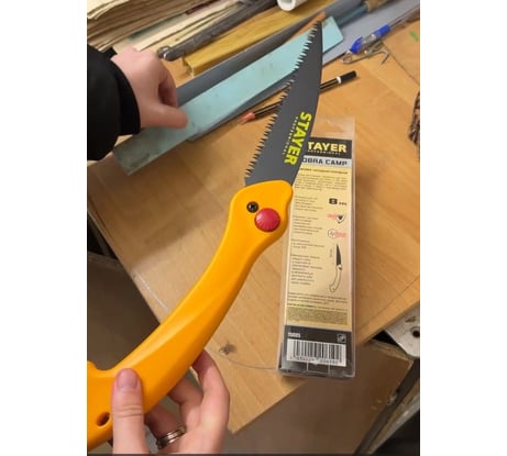 Если ты часто бываешь на природе, любишь походы или просто хочешь иметь надежный инструмент для дачи, то складная ножовка STAYER МАХСut — это именно то, что нужно. Я протестировал ее в разных условиях и хочу поделиться впечатлениями. Самое главное преимущество — это невероятная компактность. В сложенном состоянии пила занимает всего 160 мм — легко помещается в карман рюкзака или даже куртки. При этом в разложенном виде получается полноценный пильный инструмент с удобной двусторонней рукояткой. Механизм фиксации надежный — лезвие не складывается самопроизвольно во время работы. Но настоящий сюрприз — это острота и эффективность пиления! Зубья с треугольной заточкой и специальной разводкой буквально "пролетают" через древесину. Мне хватило 30 секунд, чтобы спилить сухую ветку толщиной 10 см — причем спил получается аккуратным, без заусенцев. Производитель заявляет, что пила подходит даже для мерзлой и влажной древесины — проверил на сырых ветках после дождя: действительно, не проскальзывает и не заклинивает. Рукоятка эргономичная, с резиновыми вставками — не натирает ладонь даже при интенсивной работе. А еще пилу можно использовать для обрезки сучьев прямо на дереве — для этого есть специальный крюк на обухе. Из минусов — лезвие не подлежит замене (но при аккуратном использовании его хватит надолго). Зато пила весит всего 200 грамм — идеально для туризма. Если тебе нужен универсальный складной инструмент для работы с древесиной — этот вариант однозначно заслуживает внимания. Качество сборки, острота зубьев и продуманная конструкция полностью оправдывают стоимость. Теперь эта пила всегда лежит в моем походном рюкзаке — рекомендую и тебе!