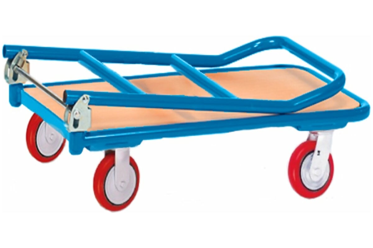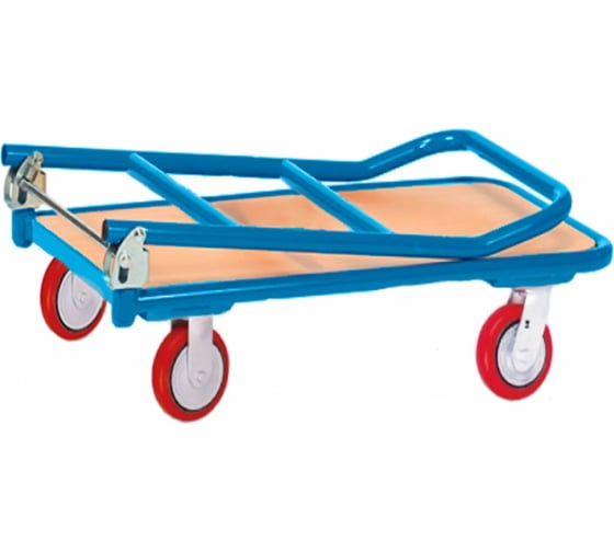 Складная платформенная тележка МосТележка ламинир. фанера, 620x920 ТПСФ-9262 легка и проста в применении. Идеально подходит для перевозки разногабаритных грузов на складах, в торговых залах, на производстве. Предназначена для регулярного, интенсивного использования. Модель имеет складную ручку и устойчивое к царапинам порошково-полимерное покрытие синего цвета RAL 5012.