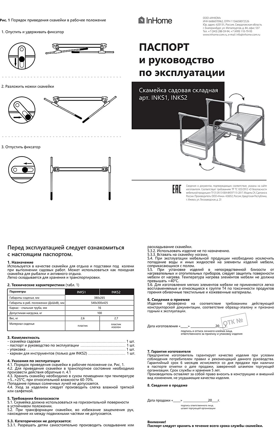 Сопутствующие товары для скамейки-перевертыша InHome INKS2/3