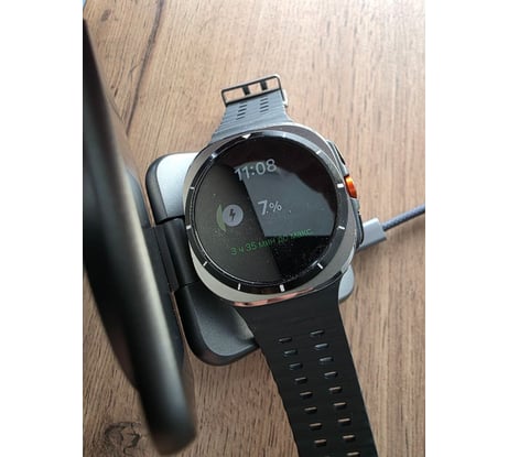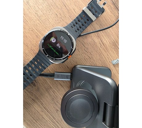 Медленная зарядка, площадка для часов слишком маленькая. Полный заряд Galaxy Watch Ultra - 4 часа (с зарядкой EP-P4300 - 2 часа 40 минут, с оригинальной таблеткой - 1 час 40 минут).