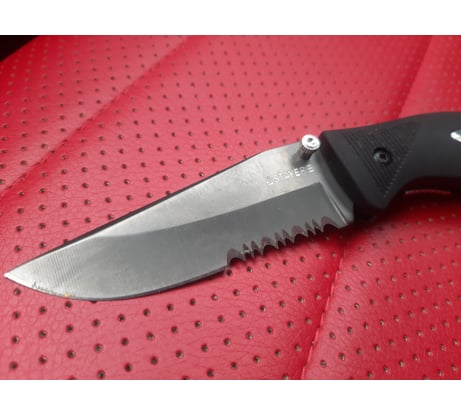 Неплохой нож. Изначально заточен, лезвие в масле, нужно мыть. Наличие зубцов на режущей части и плюс т.к. можно перегрызть что-то толстое, но при этом режущая часть меньше. Покупал доя авто, для моих целей более чем.