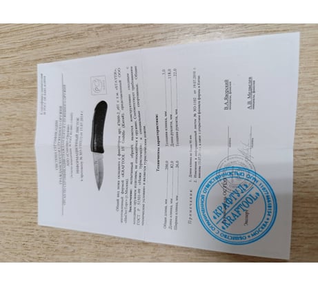 "Живьем" этот нож оказался гораздо интереснее, чем на картинке. Рукоятка очень удобно лежит в руке, хват хороший. Обух лезвия чуть крупнее, чем в описании: 3 мм вместо 2.3 мм; масса самого ножа 170 гр. (в описании 187 гр, правда, это нетто, видимо с учетом пластиковой упаковки). В комплекте - "сертификат", что это не холодное оружие.
