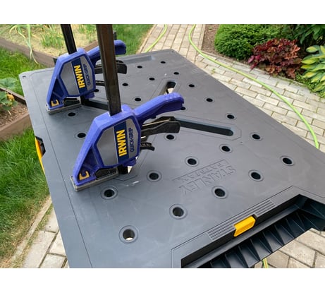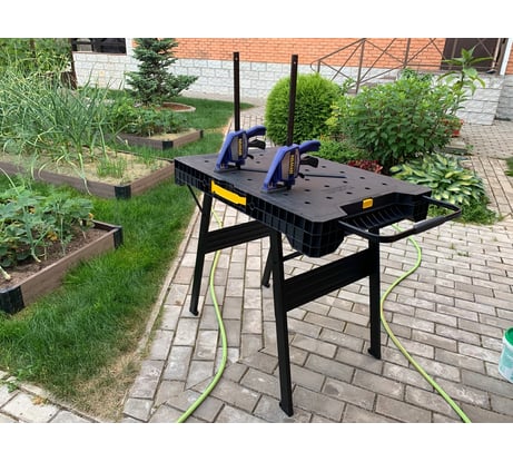 Высота оптимальная для моего роста 176см ,легко раскладывается и складывается практически за один приём. Струбцины быстрозажимные inforce губками впритирку проходят в паз,а штанга в отверстия свободно. Стол достаточно устойчив ставили сбоку ручную циркулярную пилу на фанеру, а фанеру на саморезы прикрепили к столу и распускали 25 мм доску стол стоял уверено.