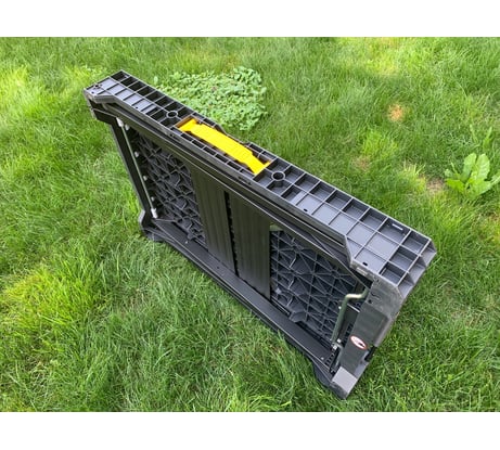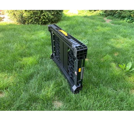 Компактный в сложенном состоянии.Устойчивый.Использовал в качестве стола с которого работал на высоте.