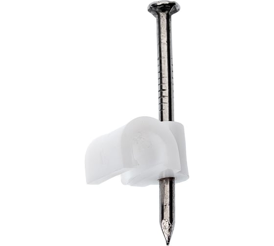 - Область применения: крепление одиночных круглых кабелей к основаниям из мягких материалов. Наиболее часто используется для крепления телевизионных и телефонных кабелей.