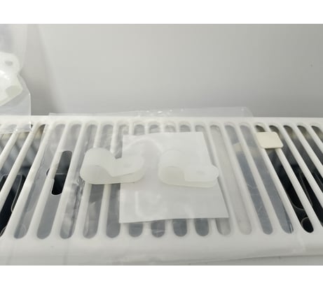 - Легкие и прочные нейлоновые скобы обеспечивают надежное крепление на любые поверхности и исключают повреждение проводников.