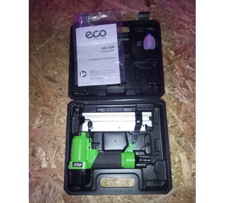 Скобозабивной пневматический пистолет ECO ASL-50N используется при отделке помещений и строительных работах.