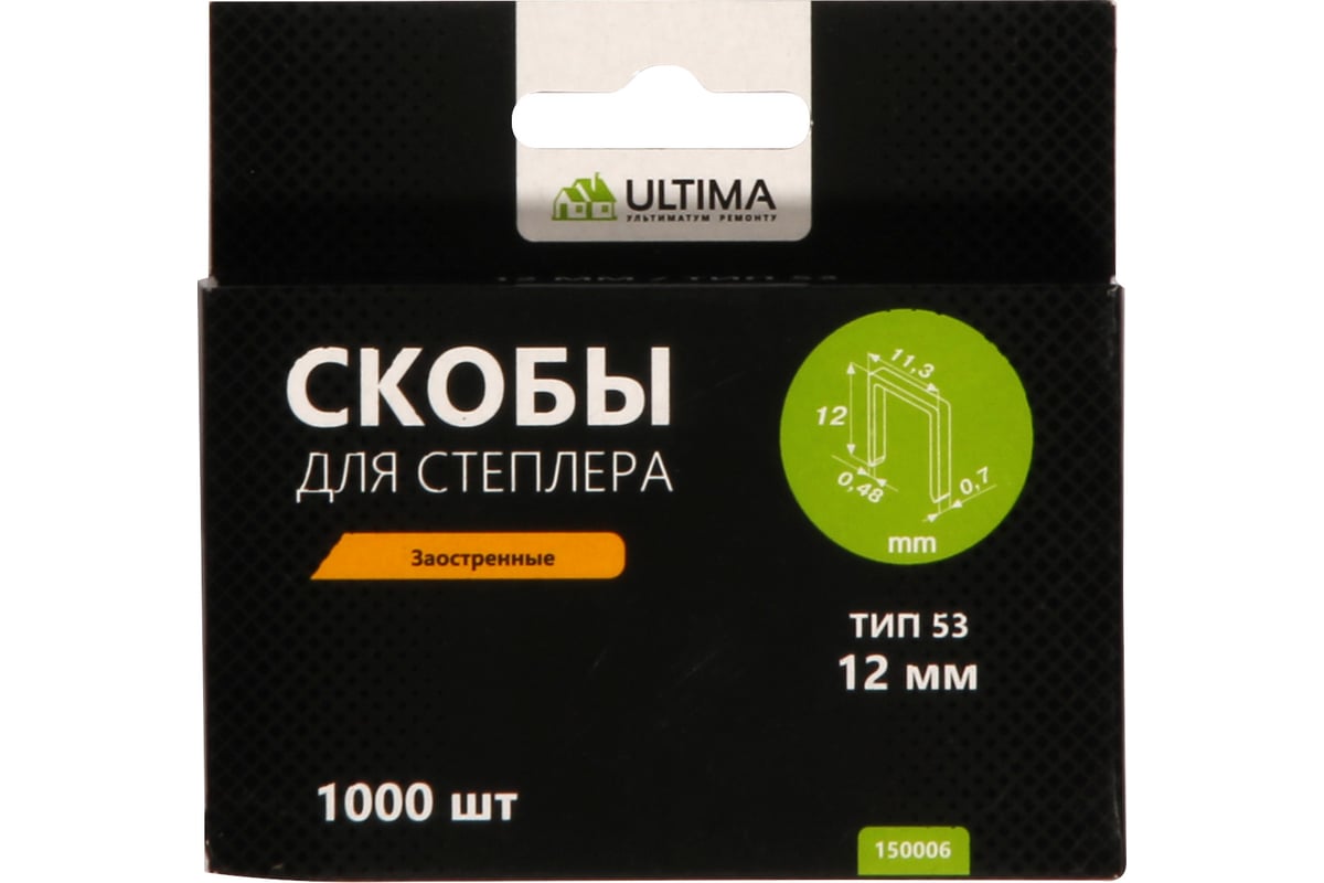 Скобы заостренные (1000 шт; 12 мм; тип 53) для степлера Ultima 150006