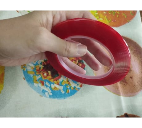 Ширина скотча составляет 6 миллиметров, а длина — 5 метров. Это даёт возможность применять его для склеивания крупных площадей.