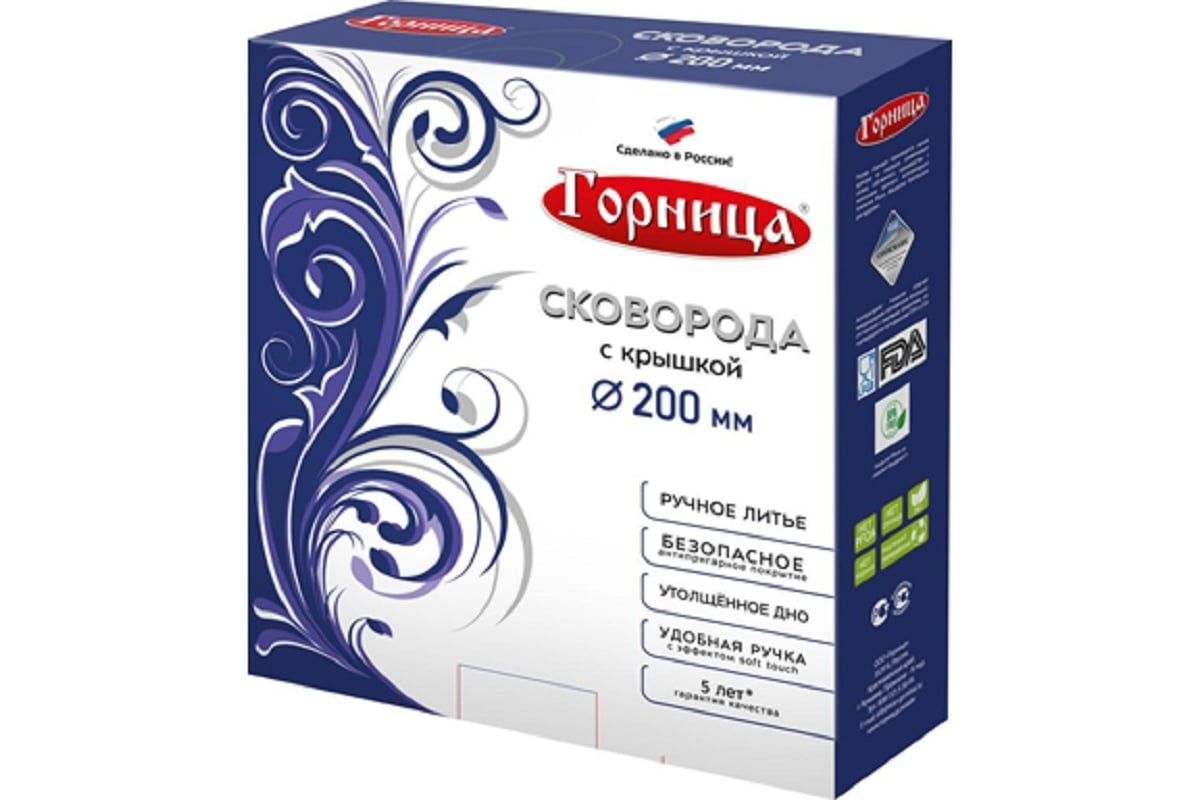 Поставляется в коробке, внутри сковорода - 1 штука, крышка - 1 штука.