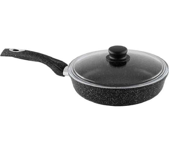 Сковорода Горница 260/70 мм, пластиковая ручка, антипригарное покрытие графит, с крышкой ТП8092 подходит для газовых, электрических и стеклокерамических плит.