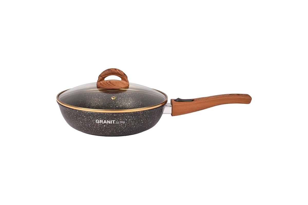 Сковорода Kukmara 240 мм со съемной ручкой, со стеклянной крышкой, антипригарное покрытие линия Granit ultra black-gold сгбг243а