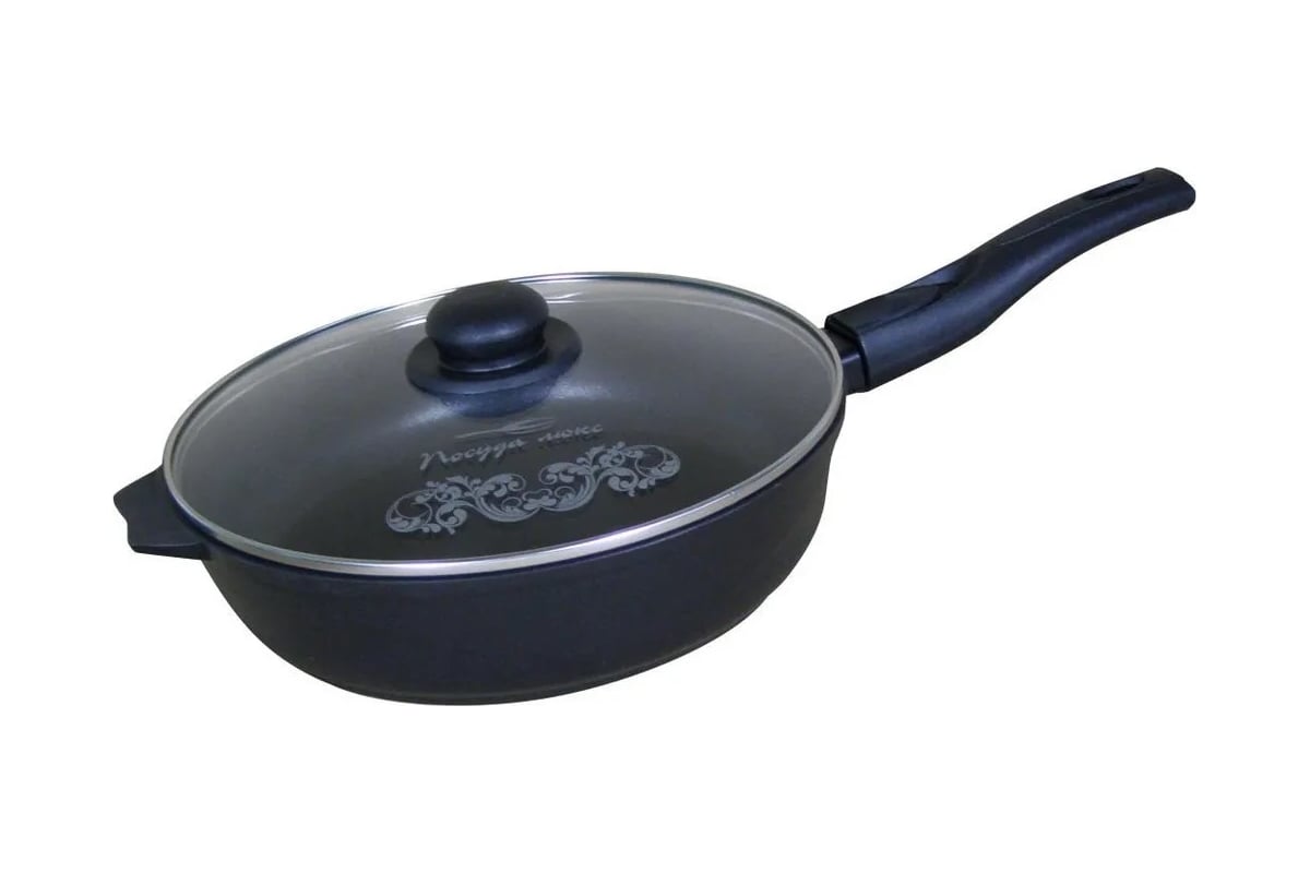 Сковорода Мечта 28 см с антипригарным покрытием престиж со съемной ручкой стеклянной крышкой с028506 предназначена для домашнего использования.
