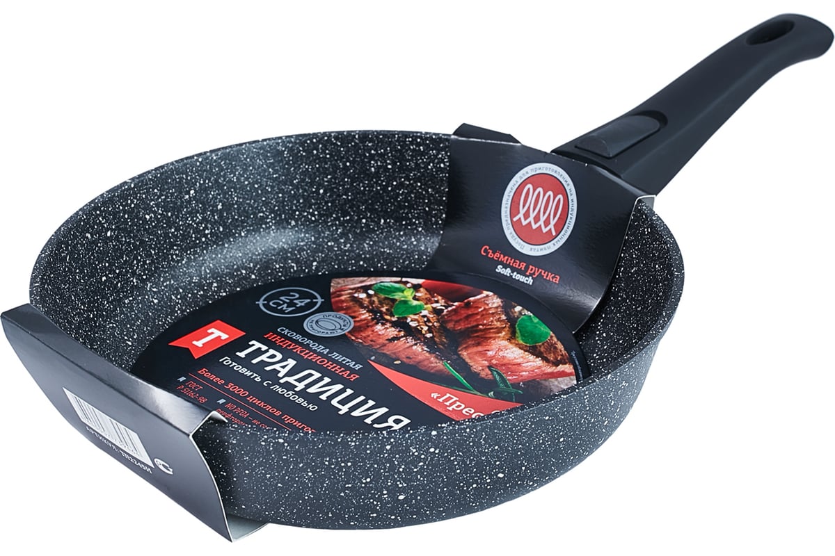 Сковорода Традиция готовить с любовью антипригарное покрытие, литая, 20 см, съемная ручка, черный, Престиж ТП2205И