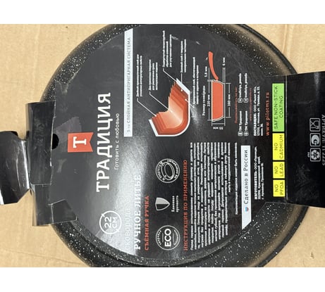 Купил именно эту сковороду от производителя Традиция - по совету повара Василия Емельяненко! Крышка того же диаметра от Тефаль не подходит. Посадочное место другое, крышка от Тефаль прилегает не плотно и может повредить поверхность сковороды, на фото видно. Буду крышку докупать от Традиции отдельно. Ручка софт-тач, хоть и отстёгивается, люфта нет, можно спокойно подкидывать сковороду перемешивая ингредиенты, не боясь, что ручка отлетит. Ручка длинная и в руке лежит норм, но брать сковороду лучше с отстёгивающейся ручкой.