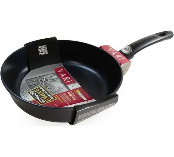 Сковорода VARI TITANO литая с антипригарным покрытием, диаметр 24 см, толщина дна 6 мм, со съемной ручкой TN31224 предназначена для бытового использования.