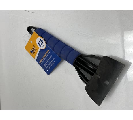 Хороший крепкий пластик у скребка, справляется со своими задачами на все 100%. Использую уже давно его, ему все не по чем. Прорезиненная ручка очень удобная, и не холодная как раз если работать с ним в холода.