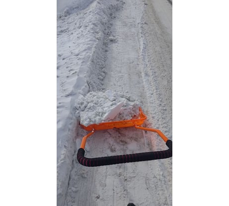 Как бритва срезает даже плотный утоптанный снег. Не боится подмерзших бордюров снежных, после трактора проехавшего вдоль улицы. Главное что бы хватало собственного веса толкать плотный снег. Плотно сбитая лопата не люфтит, гайки самоконтрящиеся держат отлично, есть пластиковые заглушки у металлической ручки, в месте примыкания к скребку, снег не набьется в трубку. Продуманная, и достаточно прочная. Главное резко не перекашивать при опрокидывании на бок тяжелого снега, это не желательно делать с любыми такими лопатами.
