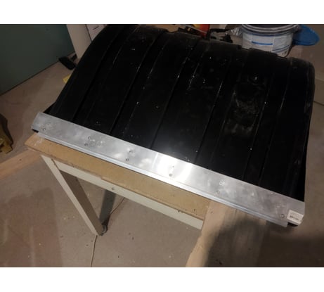 Полоса не во всю линию, пластик ужасно легко стераеься о снег, чистили раз 10 рыхлый снег и в итоге по краям пластик стерся до дырки, чистили на уже сформированном снежном покрытии, пожтому если хотите выкинуть деньги на ветер рекомендую к покупки, если нет ищиете другой вариант, лопата fiskers служит уже более 4 сезонов и нету даже намека на износ