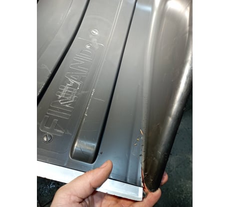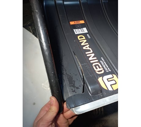 Металлическая накладка сделана не на всю ширину рабочей части лопаты. В зазоре между пластиковым бортом и металлической накладкой быстро возникает трещина, которая приводит в негодность всю рабочую часть лопаты. Неужели так тяжело сделать накладку на всю ширину лопаты??? Можно же подглядеть у хороших производителей!